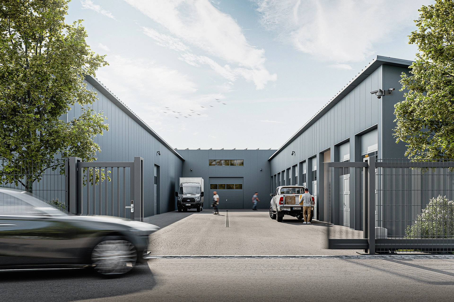Das gesamte Gelände ist komplett eingezäunt, videoüberwacht und nur über ein elektrisches Rolltor mit individuellem Zugangschip erreichbar. Deine Werte sind rund um die Uhr bestens geschützt.